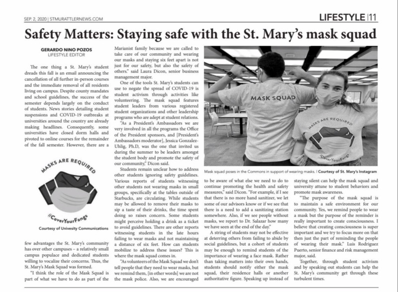 As the entire U.S. finds itself locked in a battle with a pandemic with which there seems to be no end in sight, many people have their own stories of how they have had their lives altered by COVID-19. For some, life has gone on as usual, but others have had to adapt to a radically different style of work. But how do students, specifically students who work on campus or participate in extracurricular activities, adapt to these changes? On the campus of St. Mary's University, a liberal arts college in San Antonio, Texas, many students have had to ask themselves this question, and subsequently adapt to work and socialize in new ways.