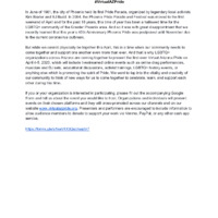 In the absence of in person events, many organizers turned to virtual spaces to establish a sense of community. Phoenix appears to be the first of many Virtual Pride Events. Larger Pride Events, such as the 50th Anniversary of San Francisco Pride, received considerable coverage, as SF Pride events were available on Twitch, YouTube, Facebook, and even broadcast on CBS. Small informal and formal Pride events, such as a drag livestream organized by Milwaukee gay bar This Is It or virtual breakout groups hosted by Ogden Pride in Utah, are also reflected in the archive. Contributor's often reflected on the positive impact of virtual Pride events. As Lawson wrote about Utah Pride, "The uncertainty is scary, but the sense of community that is being fostered by Pride events helps alleviate some of the stress of feeling uncertain or disconnected."