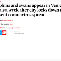 This news story appeared in the Evening Standard and stated that dolphins and swans had returned to the Venice canal. Though false, the article was added by a contributor who believed the article. The Evening Standard has since published an update stating that the claims were false. However, the URL for both versions of the article--truthful and fake--are identical.