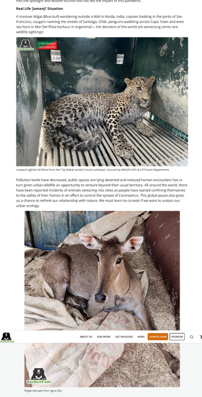"This article is important because it discusses why we are seeing more wildlife out and about during the pandemic. They discuss the topic of 'is more wildlife out, or are people just noticing wildlife more?'"