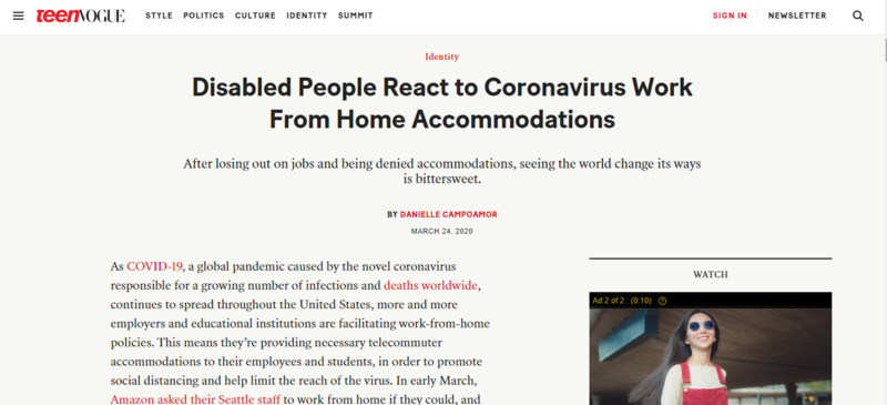 Income inequality affected individual teleworking experiences. Some workers had dedicated spaces they could close the door on at the end of the workday, help with childcare and household chores, outside space they could enjoy, and sufficient funds to buy items to make their remote work easier. Others had to struggle with small living spaces where their "home office" was combined with their personal space, the demands of housekeeping and childcare while working, and inadequate financial resources to acquire work aids and fast internet service.