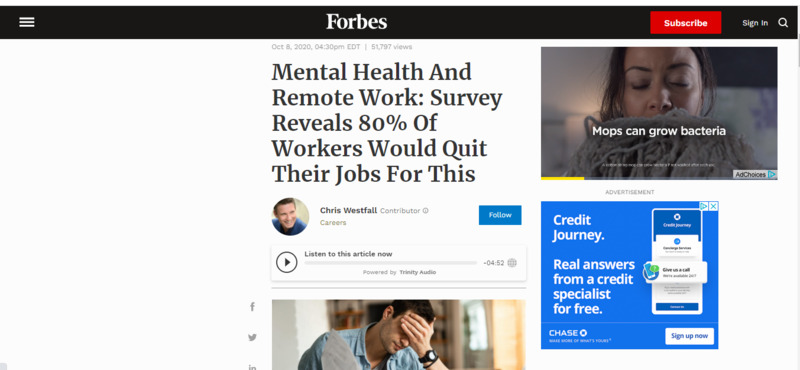 "Mental health matters, for today’s remote workforce: a vast majority of workers (80%) would consider quitting their current position for a job that focused more on employees’ mental health."