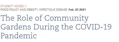 “Community gardens are one way to address issues of wealth inequity, food insecurity, mental health, social and emotional support, and public health during the pandemic.”