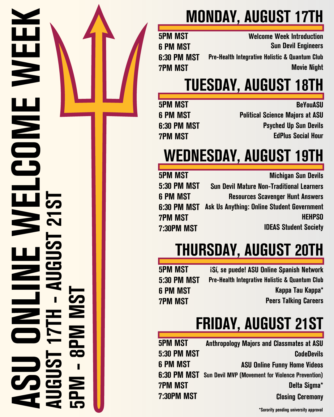 The COVID-19 pandemic has drawn more attention to online students, and given some people more time. ASU Online students have been working to develop one of the first online student governments in the nation, to represent Arizona State University's online campus. As part of this, ASU Online hosted its first ever Welcome Week via Zoom and is building rapport and establishing connections with the online community. It can be difficult to interact with your peers online in a social context, and this has provided many students the opportunity to connect and build new friendships. The community that has been built by online students, has provided myself, as well as others, the feeling that we are not alone during these unprecedented times.