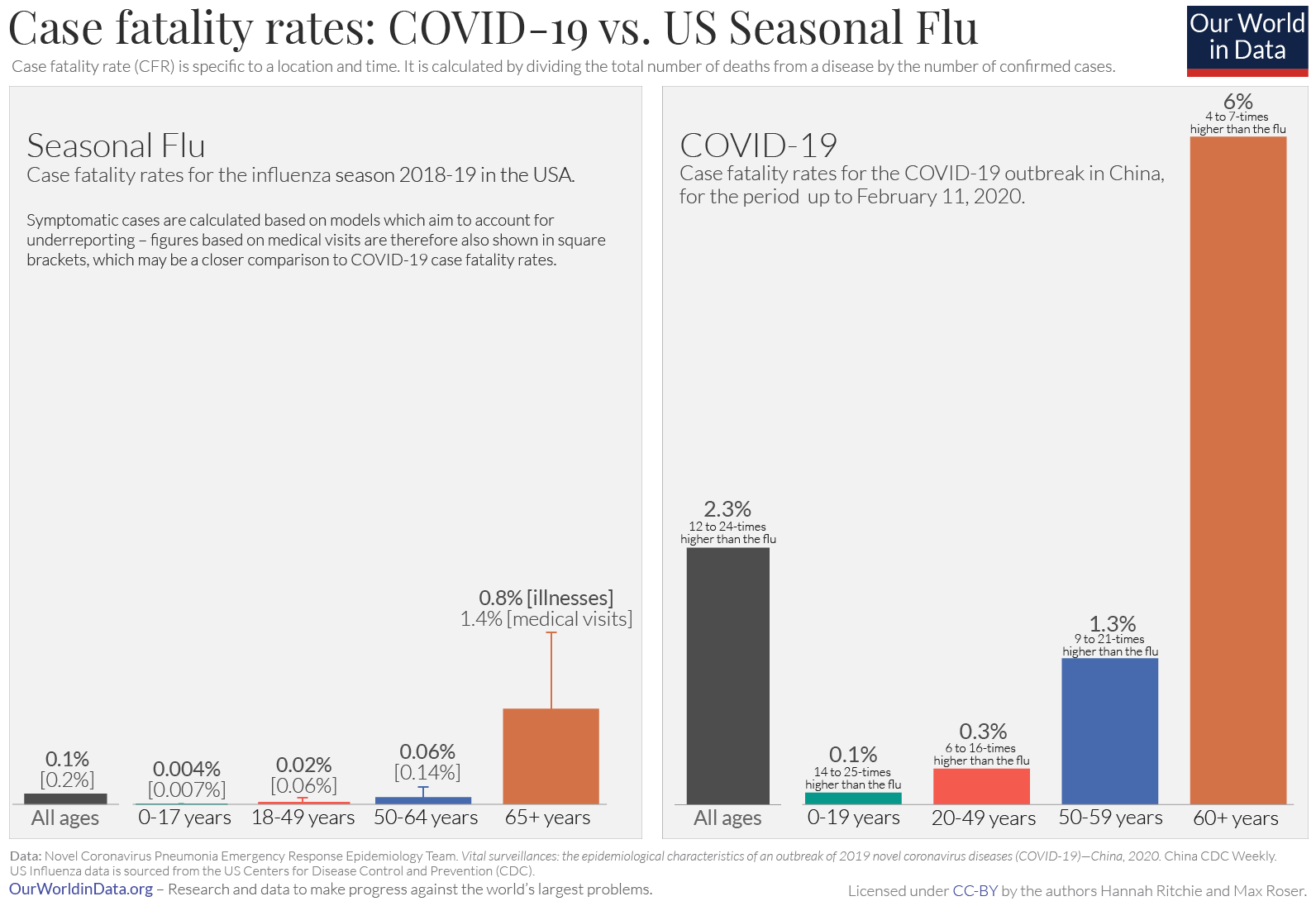 Chart represents CoVid-19 is much more deadly than the seasonal flu