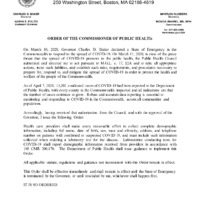Massachusetts Commissioner of Public Health Orders: April 4 - April 8, 2020
