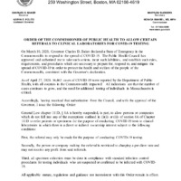 Massachusetts Commissioner of Public Health Orders: April 20 - April 28, 2020