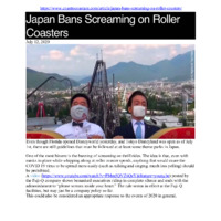 Screaming is not allowed on Japanese roller coasters in order to slow the spread of the coronavirus. The instructions to riders are "Scream in your heart" instead. Then they attached a video of two solemn-faced men taking a "fun" ride on the roller coaster. They wear masks and don't crack a smile or show any emotion at all. Yet this is the example visitors are supposed to follow.