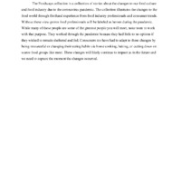 I chose to preserve the impact of the pandemic on the food industry, food habits, and body image because of my tie to the industry, my interest in food history and fat studies. It has been a difficult topic to work on, but the experience I gained working on the Foodways collection has been priceless. In hindsight, I wish I had chosen a more relatable collection because I often felt like I was alone in left field. Other interns were able to share and exchange items, that did not happen with my collection as much as others. Besides a couple of interns, I did not get the chance to network with others. Food is a relatable subject, but the industry is not. I found areas that I need to develop, including my networking skills and being confident in what I bring to the academic table. I gained a lot of confidence in my abilities through this internship, and I am grateful for the areas; it helped me see where I have room to grow. As a student with learning disabilities from a non-academic background, I was the fish out of the water, but so many of my skills did translate. The internship also gave me the push I needed to leave my comfort zone and view myself outside of the industry I've been working in for decades. If I could keep working on this archive, I would in a heartbeat, I am grateful for all that I have learned this summer.