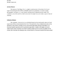 By the end of our fifteen-week internship we had become even more than a team, we had become a family. I believe this was partially due to a shared crisis. We were living through the Covid-19 pandemic together. For many of us, our weekly Zoom (online meeting platform) was nearly the only face to face contact, though virtual, we had with anyone. This was the case for me. Another intern joked he was going to rename his journal about the project, “The Summer I Distracted Myself from a Pandemic by Thinking about the Pandemic”. I realized that is exactly what happened. The pandemic really started in mid-March for me. I spent the initial month or so sewing face masks and that was how I kept myself focused and sane. Once the internship began in May I began processing my experience of the pandemic by working on the archive. I believe this summer will have been one of the defining moments of my life.