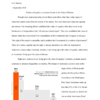 This essay was produced as a part of the American Studies program at California High School in San Ramon, California. The essay is in response to the prompt "Is America currently living up to its core values?" This essay argues America's failure at equality leads to the people using their right of protest and dissent. It also includes references to the following modern events: black lives matter movement, police brutality, gender inequality, and women's marches.