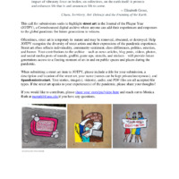 This call for submissions seeks to highlight street art in the Journal of the Plague Year (JOTPY), a Crowdsourced digital archive where anyone can add their experiences and responses to the global pandemic for future generations to witness.