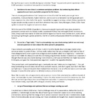 With the start of the COVID-19 pandemic, these same people I spoke with have since pivoted to permanent remote work or a hybrid model. I wondered If [they] had rethought [their] resistance in 2018, [they] could have had all of 2018 and 2019 to figure out how to make remote work, work, before we were going through a global pandemic, that for all points and purposes killed the workplace as we know it.
