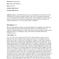 Hello. I'm Ellen Balleisen, and I'm here with Andy Gaukel, who's a puppeteer who works with the early childhood Center at Bronx Community College. He is going to talk about his experiences during the pandemic. So, Andy, could you just start by explaining your professional background and how you ended up working with the Bronx Community College Early Childhood Center?