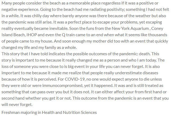 This item was submitted on February 28, 2022 by [anonymous user] using the form “Share Your Story With Us” on the site “Brooklyn College New York”: https://www.covid-19archive.org/s/brooklyncollege