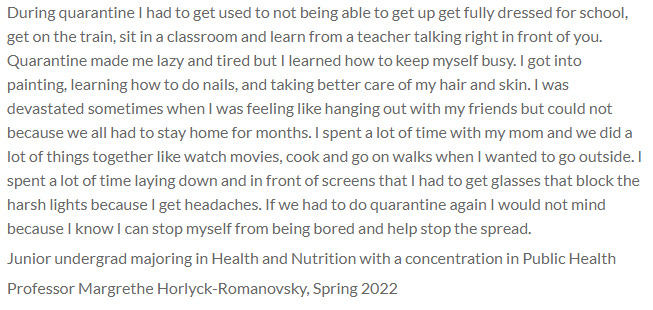 This item was submitted on March 1, 2022 by Amaya Davis using the form “Share Your Story With Us” on the site “Brooklyn College New York”: https://www.covid-19archive.org/s/brooklyncollege