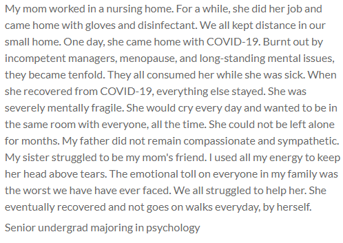 This item was submitted on March 2, 2022 by [anonymous user] using the form “Share Your Story With Us” on the site “Brooklyn College New York”: https://covid-19archive.org/s/brooklyncollege