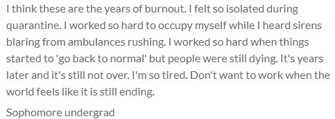 This item was submitted on March 2, 2022 by [anonymous user] using the form “Share Your Story With Us” on the site “Brooklyn College New York”: https://www.covid-19archive.org/s/brooklyncollege