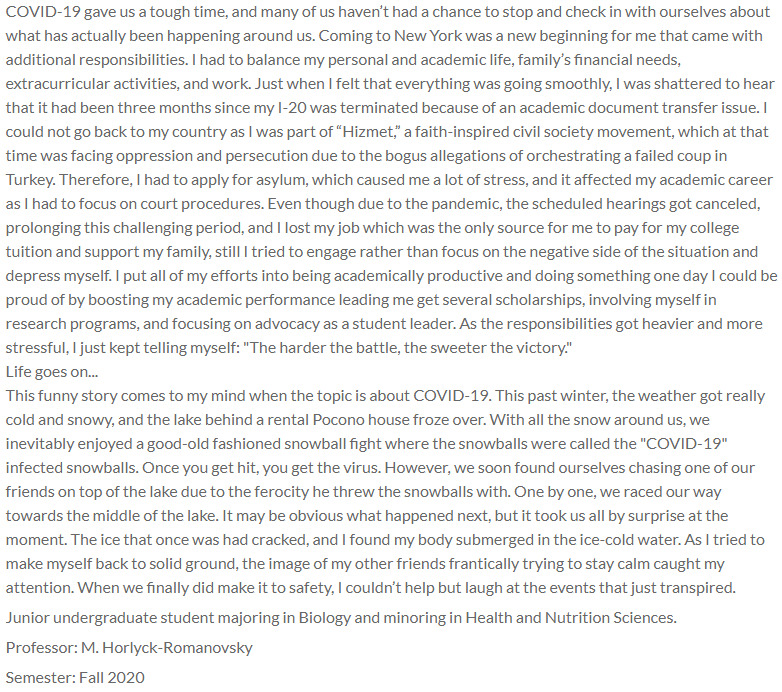 This item was submitted on March 2, 2022 by [anonymous user] using the form “Share Your Story With Us” on the site “Brooklyn College New York”: https://www.covid-19archive.org/s/brooklyncollege