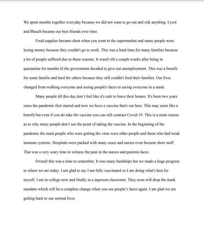 This item was submitted on April 6, 2022 by [anonymous user] using the form “Share Your Story With Us” on the site “Brooklyn College New York”: https://covid-19archive.org/s/brooklyncollege