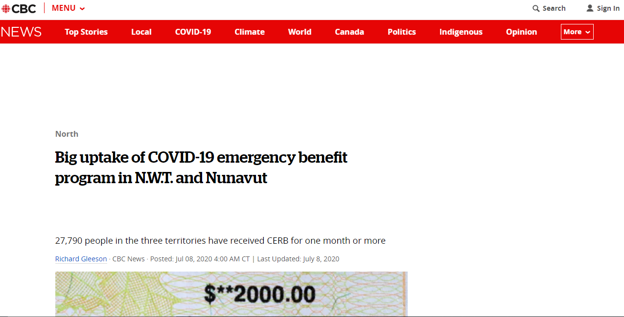 Big uptake of COVID-19 emergency benefit program in N.W.T and Nunavut