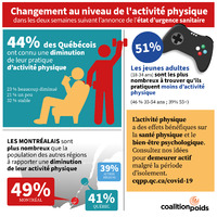 Canadians' exercise routines were interrupted by the need to shelter in place. This disruption negatively impacted the physical health and mental health of Canadians. The health of the body and the health of the mind are linked in many ways. This includes boosting one's mood and self-esteem, reducing stress, and improving concentration, all things that had been negativly impacted by the pandemic.