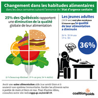Given the health crisis, notable organisations like Quebec's Coalition Poids created guides that encouraged Canadians to care for their physical wellbeing while staying safe at home. These illustrations provided valuable information about the importance of caring for their bodies.