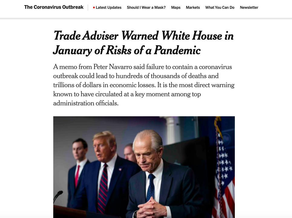 Trade Adviser Warned White House in January of Risks of a Pandemic