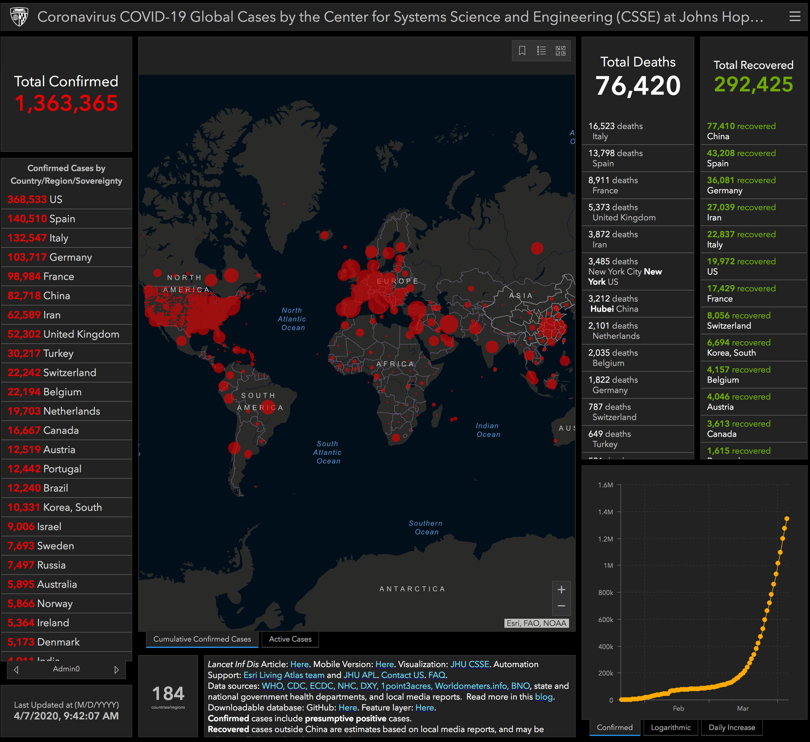 Daily check in of the COVID-19 Dashboard by the Center for Systems Science and Engineering at JHU