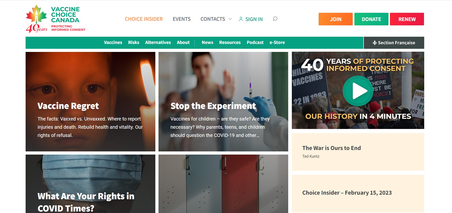 Vaccine Choice Canada’s decision in April 2020 to file a statement of claim against the Canadian government; filing legal action in July 2020