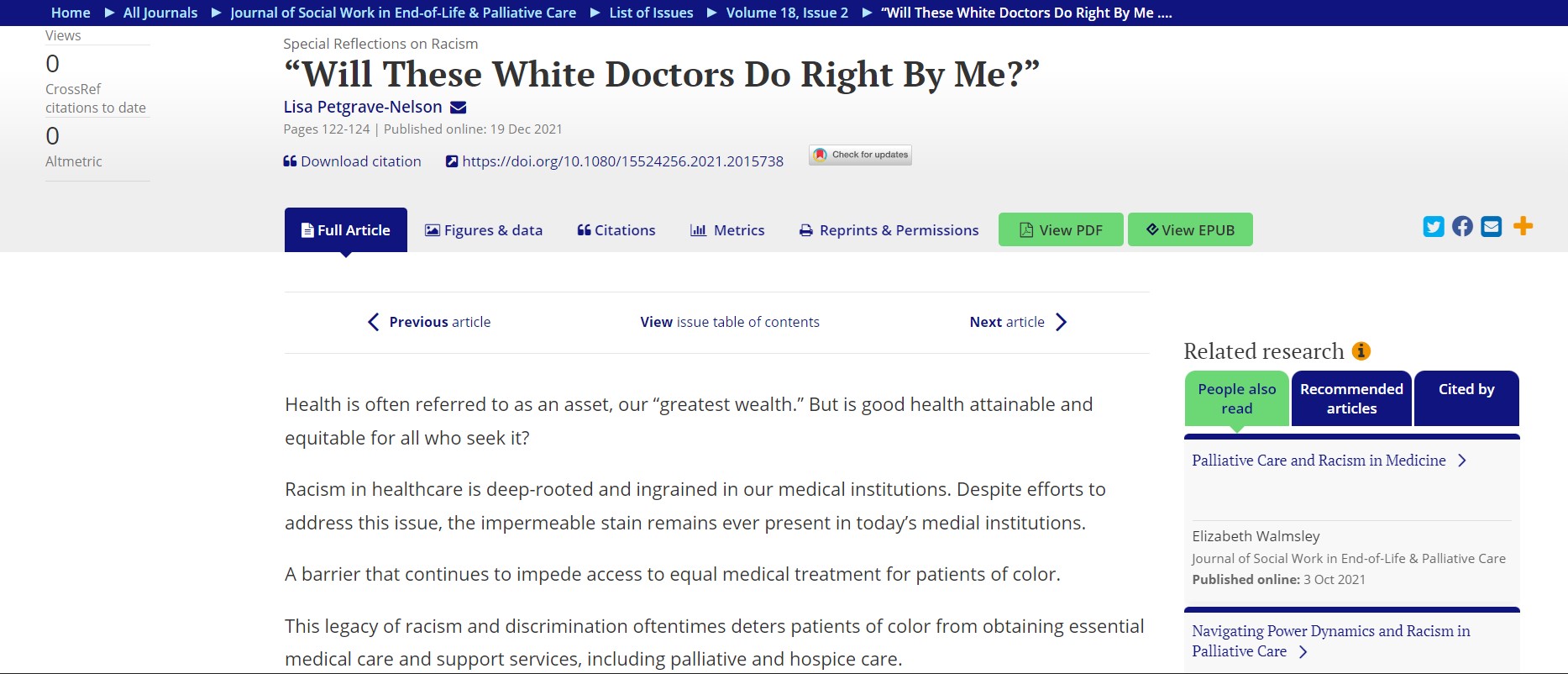So not only am I an oncology, social worker, but I'm also an oncology, social worker of color, I'm a black woman of Jamaican descent. And I, the pandemic was, I'm sure exhausting for everyone, but I think it was more so quite, you know, trying for people of color, and especially essential workers of color, which is, you know, the title that we were given working in a hospital or healthcare setting, but it was very overwhelming. Just being here with all of the injustices. There in May of 20, in March of 2022, when the World Health Organization declared that, you know, we were officially a pandemic, you know, things just changed, it was a, quite a crazy test, a very large shift, compared to how we were getting along, I think, even racially, based on the political climate that was happening at that time, and then around me, especially with the murder of George Floyd in Minneapolis, excuse me. So that led to a lot of just a lot of collective grief. Amongst my, you know, my, my few black colleagues that are here, and also with the, with our oncology patients of color, and also, our patients of non- you know, that were our white patients, right, they were really struggling with all of everything that was going on. And I think that it was quite exhausting for myself, being one of the few people of color here, when you're seeing, you know, a black person, with a knee on their neck screaming for their, you know, their deceased mother, that caused a lot of pain, grief, loss, sorrow. And so, you know, I had to not only deal with my own feelings, as a woman of color, married to a black man raising a black son. But also, you know, supporting the staff members that were here, who really couldn't, they didn't have the privilege to grieve, and to deal with, in order to openly grieve in a setting that it's primarily white. And unfortunately, in the, you know, in the setting, they were, that they were in at that time, that we were in at that time, some of the, you know, some of our workers had a lot of the sentiments that were, you know, in that we're in the political climate of making America great again, and wanting to return to some of those, those values, right. And so, that was quite trying and having to support not only my family, emotionally be there, you know, for myself, and to also support our few black staff members, and our patients that were going through it, who couldn't really talk about it openly. The white patients who were really, really concerned and we're just, you know, just very upset and saddened by all that was going on, and also some of our white staff members who came to me and confidant and were quite upset about what's what was going on and, you know, asking about how to speak to their families. How can the you know, a lot of the terms included like, you know, allies, how can they be an ally? So those are just a few of the things that went on.