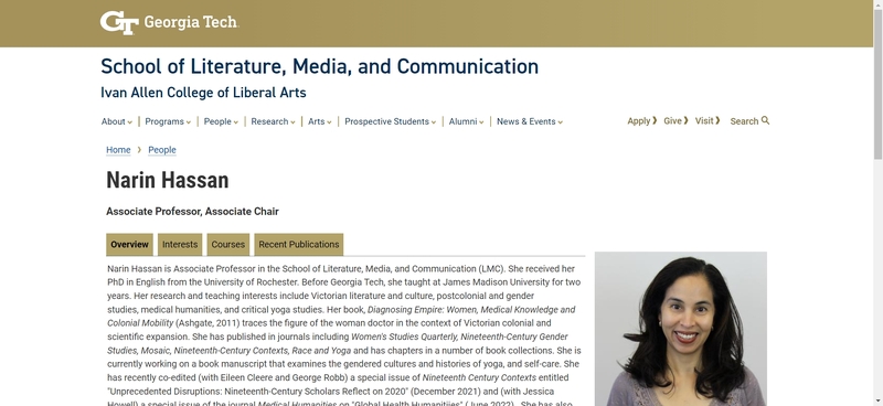 Self Description - "So I am a professor at the, Georgia Institute of Technology in Atlanta, Georgia. I'm an associate professor. And I'm also the director of a program that is called Global Media and cultures. it's a joint master's program between my school at Georgia Tech, which is called the School of Literature, Media and Communication, and another department that is called the School of Modern Languages. And, so that's sort of my, my life in terms of how I have built a career. for the last 20 or so years. I've been here in Atlanta since 2003, which is hard to believe. So I've lived here for a long time but I grew up in, living a life that was much more about moving and mobility. So, I'm the child of Pakistani diplomats. so I kind of grew up growing up around the world. I was born in Turkey, my father had a lot of postings kind of throughout the Middle East and Europe. And so as a child, I grew up moving about every two to three years. and then I went to graduate school in upstate New York, and from there, moved to Virginia for two years, and then came here and started teaching at Georgia Tech, in 2003. So, that's sort of who I am in terms of my, professional career. but I also have been a yoga teacher for the last, 20 or so years as well. yoga is something that I've practiced, really pretty consistently, since college. And it actually really got me through writing a dissertation and getting through graduate school. And soon after that, I started doing training. And then when I moved to Atlanta, I continued studying and practicing yoga. And in 2018, opened a studio"