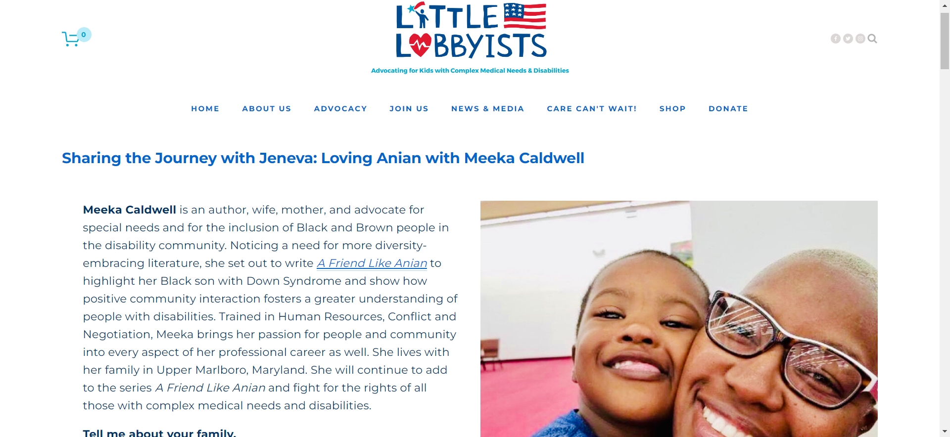 Self Description - "My name is Meeka Caldwell, I'm currently I'm a mom, a wife, I'm a sister I have, we have six kids total. We're a blended family. Just very diverse. Uh my occupation, I'm an HR talent director for nonprofit organization based in Washington, DC. And I'm also a children's book author. I actually specialize in writing children's books for those communities that are unheard. So, my son who was eight years old, has Down syndrome. And he is a wonderful black child. And I noticed that we didn't have any books that, that highlighted black children with Down syndrome, much less Down syndrome at all. So that's why I became a children's book author."