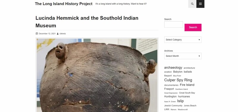 “My name is Lucinda Hemmick and I’m the President of the Southold Indian Museum, which is a chapter of the New York State Archaeological Association. The museum is owned by the chapter and it’s located in Southold New York. I am the museum President, but I am also a high school science research teacher. So I do always have an agenda and that’s going to come out in this interview.”