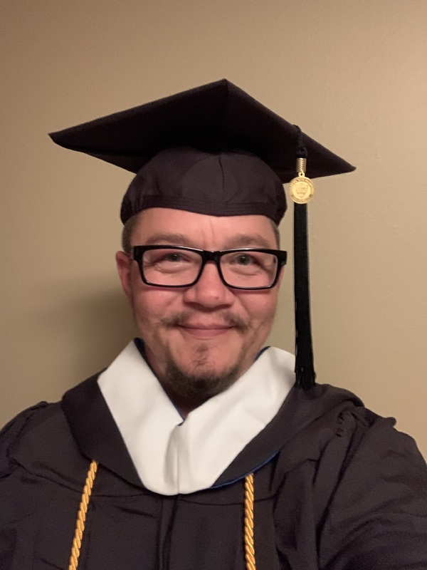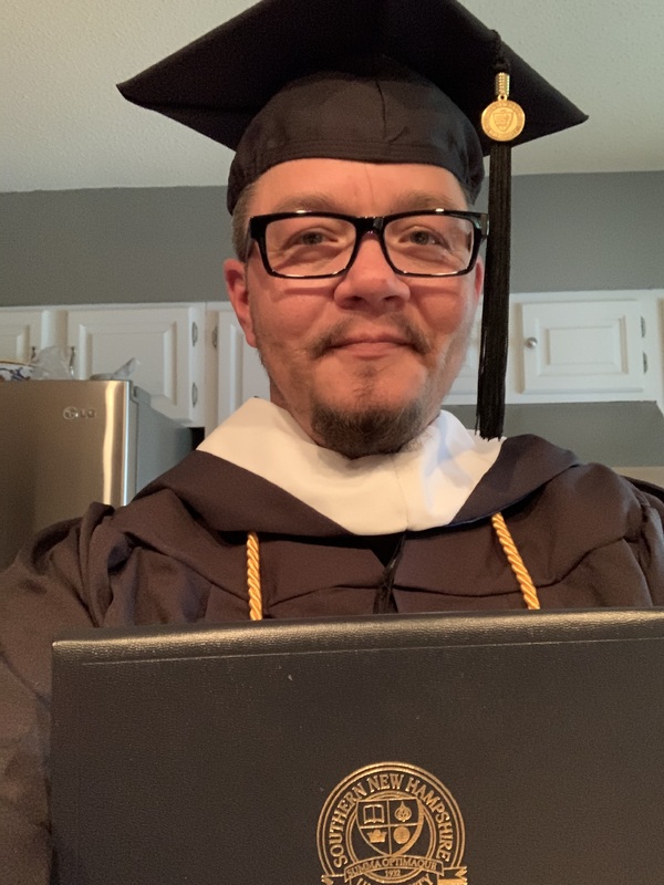 So, you know, I keep wanting to brush that off. Like, it's not a big deal. And to a point, it's not a big deal. You know, in the greater scheme of life, it's not that big of a deal, but I was finishing my bachelor's degree as I said, as a 40-something, I can't do the math anymore, but I had gone back to school after a very long, very detoured trip towards my bachelor's degree. And I started school. I think at the end of 2016, no, at the end of 2015, I went back to college and then had some fits and starts due to divorce and some readjustments and transition, you know, I apparently can't just do one or two things at a time, I've got to do like 15. And I had been at the local college, in person, normal student, you know, working around my class schedules and such, and then divorced bombed. And then, you know, had to figure out, I did attempt to go back to that school, but my ex wife worked at the school, and it was just complicated. So not a fun place to be. I took a little break, I searched around, finally found an online university that I felt wasn't a complete crock and dragged myself through that process, which was weird for a semi old fart, who had not really done a whole lot of online schooling in his life. And who had just been used to being in person face to face doing pretty traditional college level stuff. And at the very end of that ridiculous journey that I had worked really hard for and was feeling really proud about, the world stopped. And instead of all the grand plans I had of going to New Hampshire to attend my ceremony, we didn't even have a virtual one because everything was in such chaos. I mean, we were three or four months into the early part of the pandemic, and the school couldn't even like, they were like, You know what, we'll figure it out next year. Like, this is just too much for everybody. And at the time, I remember thinking of course... um I think on one hand, it was perfectly understandable that everything got, you know, just sort of frozen in time there a little bit, but at the same time, as someone who spent a really long period of my life taking a very winding way to that moment, it was incredibly sad. You know, I finally achieved my bachelor's degree, which I suppose to some people doesn't sound like a big deal, but to me, it was a pretty darn big deal because younger me never thought I could do something like that. Both ability and opportunity wise. And I finished with a 3.76 GPA, and then a completely foreign experience and then didn't even get to graduate. I mean, obviously, I graduated, but you know what I mean. So I felt like a little kid; I waited till my wife was at home. At some point, I don't know when it even was, it was much later in 2020, I think the world was trying to go back to normal already. And my regalia had shown up, you know, because of course, I ordered it anyway, because by golly, I was going to have that hat. Even though everybody looks like a dork in that hat, I really wanted it. Matter of fact, no, no, I finally put it away. It was sitting next to my desk for a really long time. So I'm, you know, dressed myself up, like a little kid, took a bunch of graduation photos of myself. I had honor cords, and you know, like, that was a big deal. And when they did finally get around to like, oh, last year's folks, we're going to do a virtual graduation for you, and, you know, by that point, I was like, forget it. I've already started my master's program, I'm doing 15 other things, you know, they threw us back into the office in August of 2020. Like, you know, Iowa did not, in my so humble opinion, manage the pandemic terribly well. They were dead set on just making it a blip. And then, you know, gotta get back to normal, got to earn our money, got to do our stuff. Forget all the rest of you. And so I was just up to my eyes at that point, I was like, I can't go to New Hampshire in the middle of all of this. Plus, I'm not going all the way to New Hampshire in the middle of all this. The rest of you are trying to go back to normal, and I'm like I don't think so. I'm not particularly immunocompromised or anything, but it just, I don't know, I'm even a bit more of a, and I totally flippantly use the term germaphobe. Not technically speaking, but, you know, one of those folks, it's like a little bit moved out by germs and stuff. And so, you know, the thought of getting in a plane that I don't like anyway, surrounded by people and the same air... nah. I'm good; I'll just take selfies, look like a goofball in my regalia. And so let me tell you how, absolutely, like squinty eyed I am at the end of my master's program at this point, because COVID is such a resurgence for the 9,000,000th time. And, and my university I attend Adler University in Chicago, obviously, mostly virtually. And they're kind of going back to like, well, I think we should have masks in the building. And they've they've handled this really well, if anything, we got irritated because they were a little too conscious in our opinion. At one point, we were like, really, can we have our residency program. Like I went to Chicago anyway and rented an Airbnb with three other students in my cohort because we had a residence week, one darn way or another. And it was a blast, and Chicago is home to me. So I was like, I'm not missing this trip. I don't care what you do. But now at this point, I feel like deja vu, right, like, I feel like I'm approaching this graduation again, with like, numbers going up and monkey pox happening and, and in particular, Chicago is struggling with monkey pox. And I'm just like, really, really... I'm 48 years old. I am this close to achieving my master's degree in October. My classes are done in four weeks. All I have left is the rest of my internship, and I'm done. Well, and some pretty hefty exams, talk about those. And I feel like it's coming again. I feel like they're gonna say, for the safety of all, we're gonna move this virtual. And I cannot tell you ho