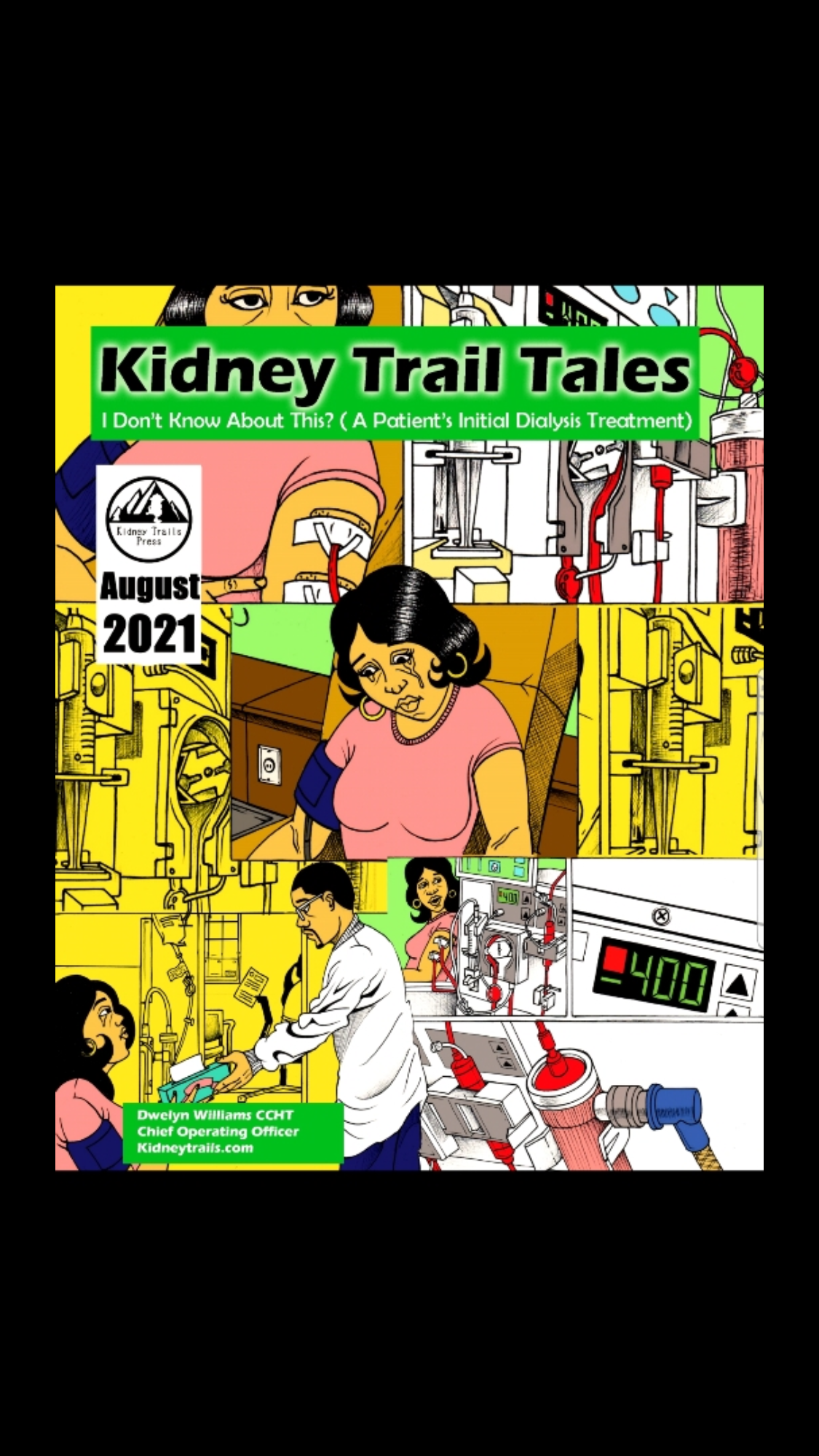 Oh, yes. Oh, God, I love that. Yeah. You know, I've always, you know, growing up, I always wanted to be an animator or cartoonist. And, um, and I do have drawing skills. Because, you know, my siblings, they also are, you know, very artistic as well. I kind of like, I kind of got away from that. But it always has been a slip back in my mind, who doesn't love a good comic book or a Marvel or DC movie? I've always been facinated on the animation. Even my personality is pretty much anime and animated. If you can see my face now, you probably will say that. Yeah, I concur. You know. But you know, I like to tell you something. When I was in Orlando, Florida 2017. I remember it was either Tuesday, Thursday or Saturday. I never forget this. I remember one of the little individuals that I helped provide care for. I saw him drawing in his chair. I didn't see him drawing I saw him just kind of doodling a little bit. And I was so amazed with this gentleman, his name is Tori Harris. I was so amazed by him, because when I saw on his poster board, I didn't even take my break. I think I sit and talk with him my whole break. And this gentleman, he's from the Bronx, New York, but he's in Orlando, Florida. And he said to me, I said man do you draw? And he was like, yeah, just nonchalantly, he's like yeah. And I said, no, that you draw that, that I see before me, he was like, yeah, and he, he was like a comic strip. It wasn't colored as black and white. It was like a perfect comic strip, like someone took a picture. He reached in his bag and say, Yeah, I have my own comic book. And I was like, No way I'm thinking, you know, he's paying, you know, charging $20, $30, whatever. I didn't know, only $5. And what I did was he had a website, so I bought the comic book off of his website, you know, because I couldn't give him money on the floor. Because you know, that those one of the boundaries. of you know that patient care, you know, can't do that. I wanted to, but I didn't. And I had him make the flyer, by me running for, I was, at the time I was running for an NAHT, which is the National Association of Heathcare Technicians, I' was running for president, he actually drew me a flyer of me standing beside machine, I still got that picture too. And it was so amazing, because there were individuals that knew me and didn't know he said that that looked like me. So therefore I knew he was talented, so fast forward, him and I've always kept in touch with social media and Instagram, or you know, or Facebook, you know, after I left Orlando. And I say, hey man, I would like you to draw for me. And he is actually my illustrator now, and he is still on dialysis. So our Illustrator for the kidney trails, he is on dialysis. I think that right there, inspirational, you know, by itself will let renal patient know that that's a thing that they can do. And also, with his graphic novel, Anthony Reed reached out to me two years ago, and said you're gonna have to, he said, Dwelyn, he said, I want you to run a blog for me. I'll let you do that. Because, you know, people might know I'm pretty well known on social media. As far as LinkedIn, I would saying. And I said, what about? He's like I want you to write about a patient's first dialisis. I said, I can't write about that, I'm not on dialysis. He said, well, let me ask you, how long you've been doing, how long have you been a technician? And at the time, it was, what, 20 years? Two decades? So you mean to tell me two decades you have not experienced someones first dialisis? So Anthony Reed he was saying [inaudible] perspective. I was like, Oh, right. I said let me think about it didn't take long I said, you know, that I can just write this one story. So this is something that is endless and timeless. I said, because every renal patient has a different story. He says you're getting it. And I said how do you feel about turning this into a comic book form. He's a Yeah, Anthony Reed loves comics. He's a DC. He's more of a DC fan. I'm more of a Marvel fan, you know. So he says to me, let's not call it a comic book. It holds more stature and credentials, more status, we use a graphic novel. And I don't know if you can see but my the picture that I have up that's the picture of the graphic novel and that's our model. Make your story what we've been and make your story viable one word at a time. And I've got nothing great, great support and comments about the cover photo, because it paint a picture of a renal patient sad, you see a gentleman, which is me handing her, you know, the tissue to wipe her tears, you see the dye line. And so those are things that people can relate. So the graphic novel, this, the star character is my mother, AW. And my mother is deceased. She died in 2003, at age 56. So what I did with this graphic novel was, I took myself back in time, to whenever she was living I brought her to the present of where I'm at in my career, based on me, wishing that I was able to supply her with the knowledge while she was going through dialisis in the 90s. So I kind of went through a little time warp, you know, it's kind of like, Hey, Ma, I want to tell you what to expect. And just hoping that anyone who reads this novel, and read my story will be able to cope with that, and their family be able to understand how they feel. So I have not met one renal patient dialisis patient that can really say to me or their family, what they are going through. So I want you to ask yourself a question, Kit, you know? If someone were to say Hey, what do you do for a living? Or how was your day at work, honey, etc, whatever you like. You don't have a clue. Or you say I don't talk about it. Whether it was a stressful day. If it was a good day, you still have a hard time explaining it. But if we all could paint a picture of how our day is on a daily basis. Oh, man, you know, it's more given than anything. So that's what got me and inspired me up to the day to want to print more graphic novels for no
