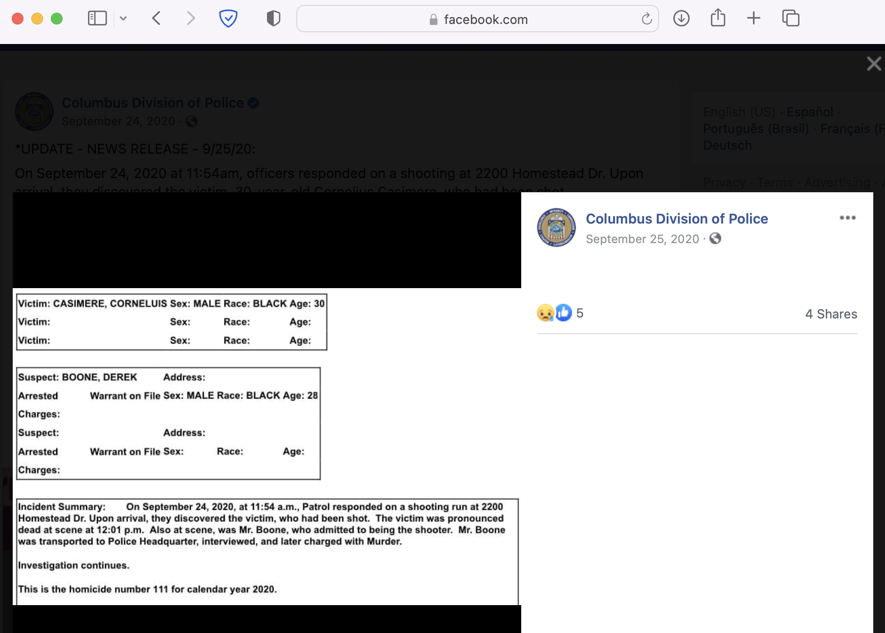 Supporting a friend, Malissa Thomas St.-Claire, in doing activism for Mothers of Murdered Columbus Children.