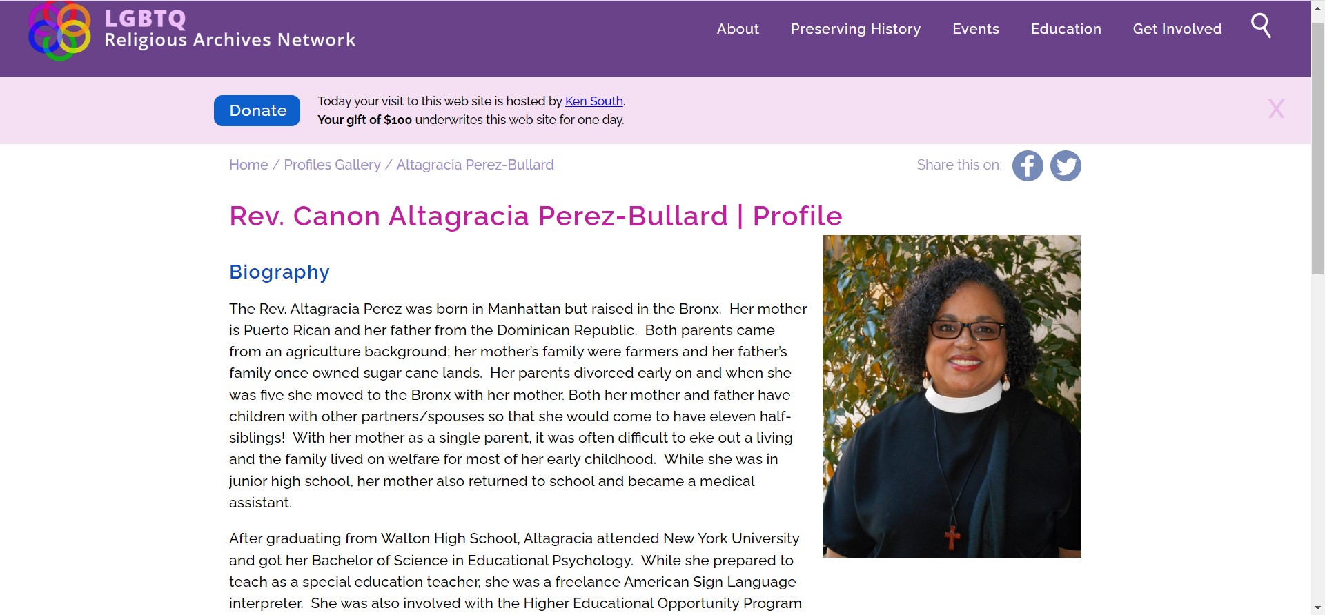Self Description- "So my name is Gracia, I. I'm born and raised in the United States. My mom is Puerto Rican and my dad is Dominican. I have been living my life as an Episcopal priest for the last 30 years. And well, Episcopal Minister has become a 27 years of my priesthood or something 27/28. But I was a deacon before that. And now I'm an assistant professor of practical Theology at Virginia Theological Seminary in Alexandria. And I'm also the director of the contextual ministry program, which is basically field ed. So all my all my pieces have come together to bring me to this place."