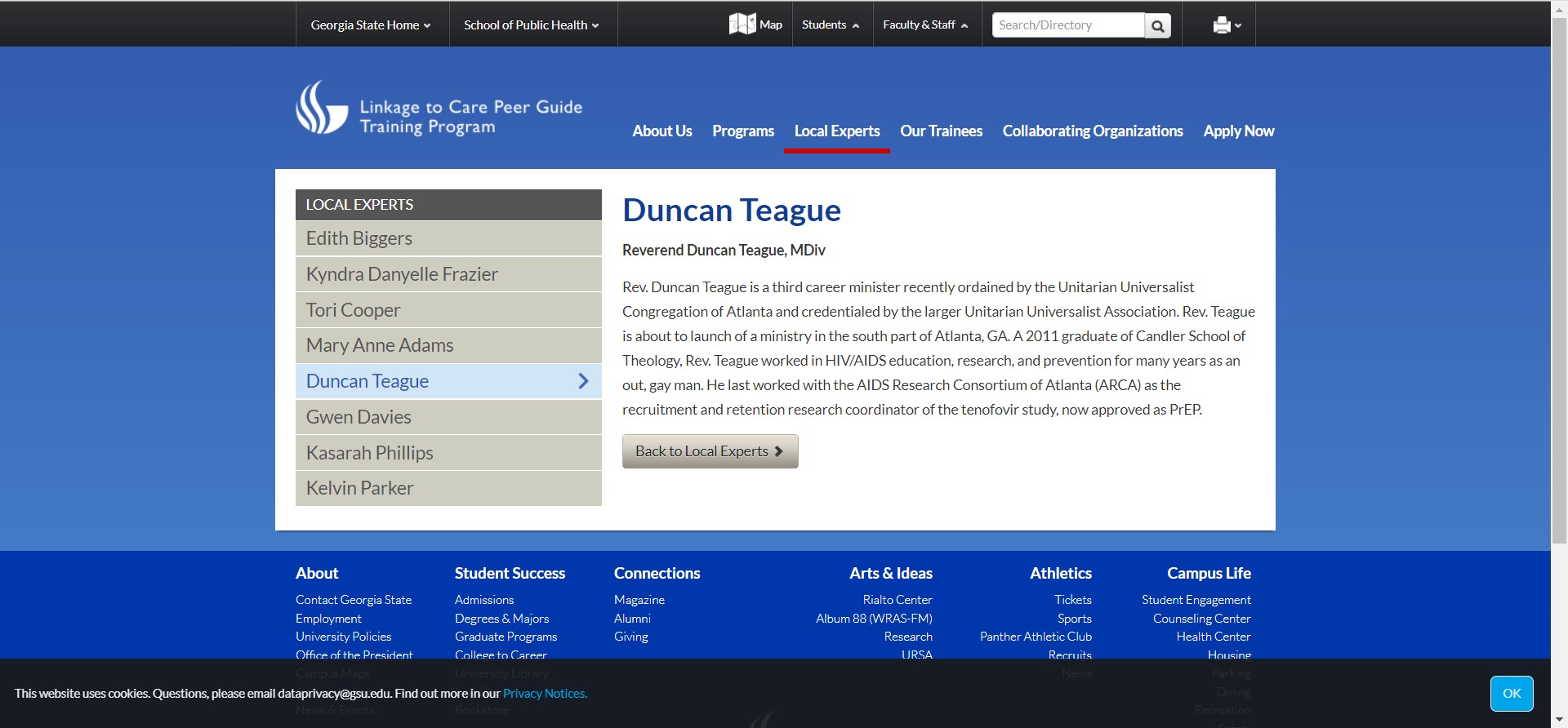 Self Description - "Well, um, it's it's very particular to this moment that I am a minister of a new Unitarian Universalist congregation in Atlanta that we founded our four and a half years ago. So our fifth anniversary will be the same date that Mandela walked out of prison was our first official Worship Day, February 11. Some I'm really proud of that coincidence, or sacred timing, however you want to look at it. And that I was called to that. Because we will be for a while now. The only Unitarian Universalist congregation in Atlanta of the six or seven of us, who is centered in an African American community, predominantly. And yeah, and I'm proud of that. And it was myself and a group of people who wanted to see this happen. And we're not the first attempt at this, but we're the latest. Yeah, so that's going on. I also because of my being a Unitarian Universalist minister. I needed to do some things around credentialing. So I took a part time job with Dr. John Sullivan's at Emory University, and the Global Health Division of Rollins School of Public Health. And what Dr. Blevins does is he pairs public health issues with issues around faith and HIV and AIDS. And he's been working in HIV and AIDS since he was an act up as a very young man. But that's his story. I also have been working in HIV and AIDS since I was a young man, I have friends and act up I wasn't. I have very good friends in active. And it is interesting for me to have, in my mind, left the black Baptist Church gone and experienced liberal religion among a group of folks in Atlanta called existentialist and felt very free and very open and then to have watched my ministry grow there to have become a Unitarian Universalist and and really feel like that's where I'm called to serve. And to end up right back in HIV and AIDS, and in predominantly black community, this time Sub Saharan Africa and fighting some of the same fights and, and championing some of the same causes. It's not all fight this many years later. It feels very surreal at times. very surreal, because I find myself being the one openly black gay man in rooms now. Like I used to be way back in the late 80s and That's like, really? Yeah. Kind of sad actually. Kind of sad. But we're called where we're called."
