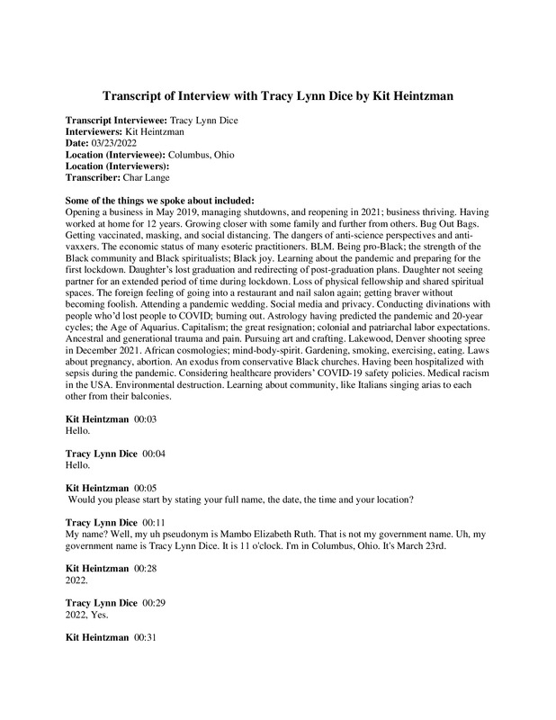 “I’m a Voodoo Priestess. I’m a spiritual worker. I’m a small business owner, a mother, and instructional designer of online courses; so, you can imagine what my life has been like the last couple of years. And, you know, community servant. You know. I do the things I do, not just to help myself, but to help the other people in my community spiritually.”