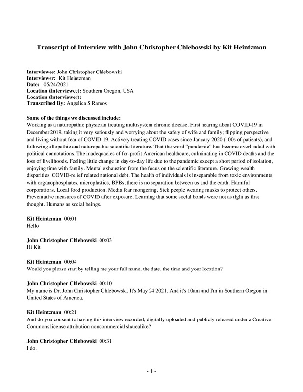 Self Description: "I'm a naturopathic physician who's been in practice for close to 15 years. I focus on the treatment of multi system chronic degenerative disease. I have been actively treating COVID patients since January of 2020. And have been avidly involved in following all of the research from both a biomedical and a alternative and holistic standpoint, as well as very involved with trying to understand the political and economic and social landscape of this pandemic."