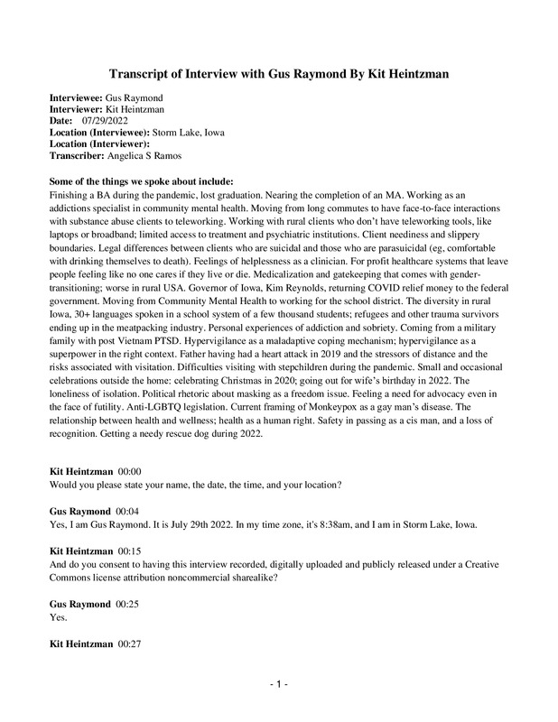 Self Description: "Oh, gosh, it's a long list as far as titles go. I am currently at the very end of my master's program for clinical mental health. So I'm a mental health intern. I also work full time in the school district, the local school district, as the director of prevention and intervention. I am a certified CADC for the state of Iowa, which means I'm, I'm a substance abuse counselor, and I have been for close to five years now. Gosh, I'm a trans man, I'm a husband, I'm a dad. I'm a dog dad. I used to be a chef, and now I just wear about 15 different hats and and try to do all the things that feel right to me to make the world better."