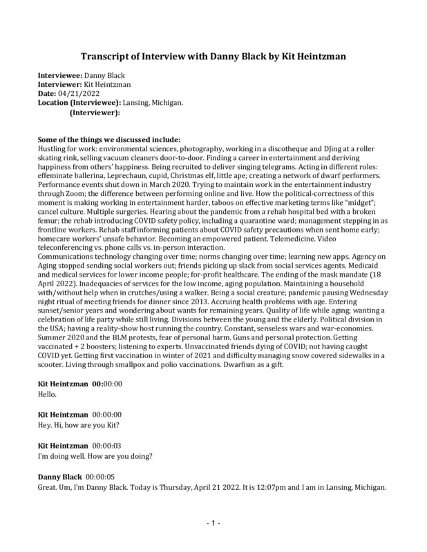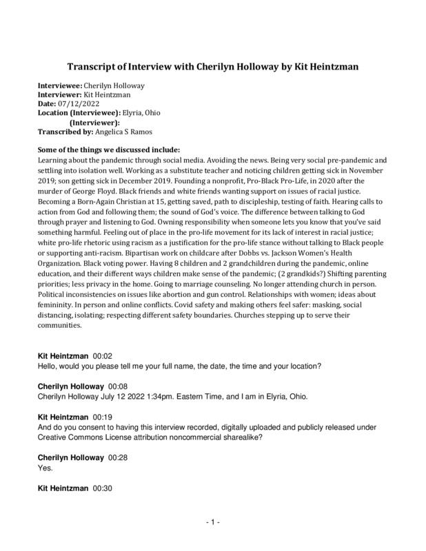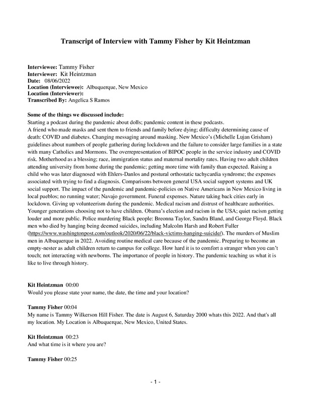 Self Desription: "I am an African American female. And I will tell you why that's important later on. I am a mother. I am self employed. But most of most of my work is around my family. And so I work, I'll say I'm self employed, and I worked part time, that's a better way of describing it. I'm also an artist, during the pandemic, I became a podcaster. And I am also a doll expert. And my primary focus is in how minorities, you know, in the DEI space, and having more representation with dolls. So that's how all of that's going to play in later with what happened for me, during the pandemic."