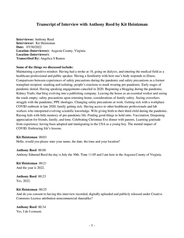 Self Description: "I was actually adopted in 1990, by two wonderful parents do from Guatemala and brought over to the US had a good childhood. But at age 18, I ended up having a stroke due to high blood pressure. And because I didn't do what I should have done for a sticking with medication, I ended up on dialysis as a patient in 2013. With in stage renal disease, I did dialysis for four years got transplanted in April 13 2017, have had the opportunity to work in the medical field in a in a technical capacity, which has been wonderful. And even in you know, things were going well with it. And then 2020, of course, COVID hit and definitely changed the way the medical field was at the time, and also some of the different experiences that we found during COVID. And even at one time catching COVID myself. "