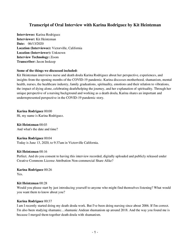 Self Description: "I recently started doing my death doula work. But I've been doing nursing since about 2006. If I'm correct. I'm also been studying shamanic…shamanic Andean shamanism up around 2018. And the way you found me is because I merged them together death doula with shamanism."