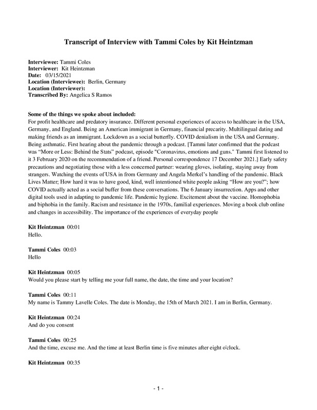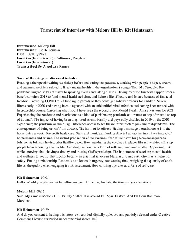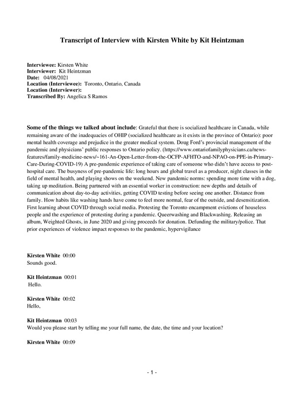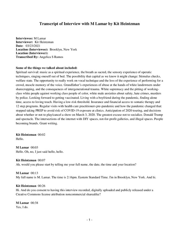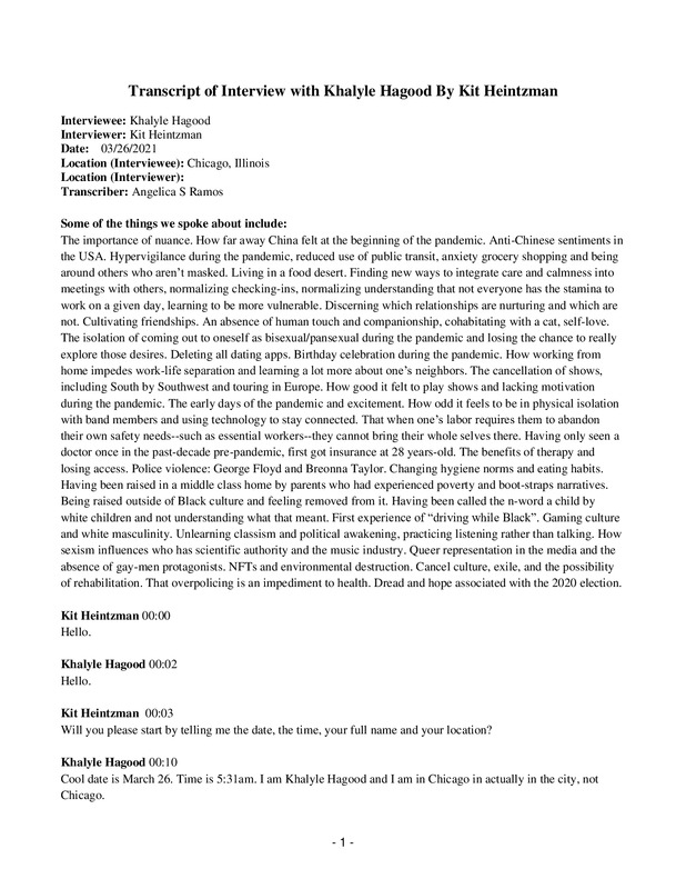 Self description: “I am sitting in my bed right now as I’ve done for a lot of this quarantine. In regular times and I guess still now, I’m in three bands and I also work at the library, the public library. So I’ve been working there in person since we came back to work in May. I was contacted for this interview through Bussy Kween Power Trip, which is a Black queer punk band with three people, no guitars, so my close friends. I’m in two other bands. One band is called Je’raf and one is called Cordoba. And one person each from Bussy Kween is in each of those bands. Haven’t played a show in forever. I can give a little about what I look like or am like. I’m a woman. I’m 26, almost 27 I guess. I’m Black and Asian. I’m kinda short. And during this pandemic I’ve been in general super lucky to have a job still and a great living situation. And I met my partner right before the pandemic, so we’ve been chilling a lot and that’s been amazing. She is so great. Yeah, just going to work and working on all kinds of things in my home. And sometimes having the energy to do a bunch of music and crafts and other art things, and sometimes laying in bed for a full day.”