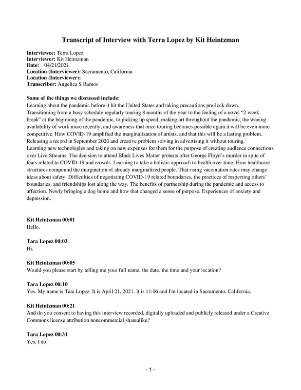 Self description: “My name is Laura, and I am in two bands right now. I am in a band called Scrunchies and a band called Kitten Forever. I play guitar, base, drums, and I sing in those two bands. I live in Minneapolis, Minnesota. For work, I work at a community cooperative grocery store, in an administrative position, but one that is community outreach based and have a lot to do with meeting and coordinating with our community partners, a lot of the work that I do is about mutual aid, and helping out the community with the resources that we have available to us. Besides that I am a visual artist, I like to paint, I like to draw, I like to read books, and I live in a little duplex with my partner and our cat Sissy.”