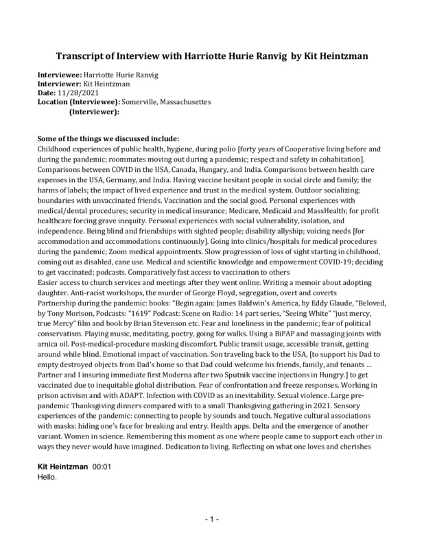 “I feel as though I’ve had 7 lifetimes in a lifetime. I’ve been married and divorced three times. Two of those times very amicably, and I’m close friends with both (of them. [My third husband was a dear friend young Indian who as a friend and lover of my husband who struggled deeply with depression. With out this friend, I have grave doubts we could have completed the 18 month legal and actual journey in India.] My first husband [introduced me to classical Hindustani music in north India, which made it possible for me to become a performer and teacher; the love of it has nourished me to the completion of my dissertation in 2009 and beyond] has been an important feature of my life, certainly up to the completion of my dissertation in ethnomusicology in 2009. I had two children with my second husband. The first was our biological son in ’85, and then we wanted a second child. But when he was an infant I had a herniated lumbar disk, and was kind of put out of work and everything else for four months. I decided I really wanted to save my body’s energy and adopt an Indian daughter. We managed to do that. We went back To India on my senior music research in (1989-91). I should say one last bit about that [earlier part of my life; just prior to the senior research grant period, I worked for five years] at the Massachusetts Office on Disability, then so ridiculously named the State Office of Handicapped Affairs. I mention that here because in the last 8 years I’ve returned to disability advocacy, I’ve taken it on as a real personal and volunteer activity, in a strong cross-disability fashion. So for example National ADAPT and Massachusetts ADAPT, especially National, was very much focused on individuals who were and are wheelchair users and often in need of certain amounts, or many hours, of personal care attendants [as well as affordable and accessible housing.] I think I might be one of two blind people in a national organization that I’m aware of. I’ve taken on civil rights non-violent actions [recently in the effort to keep the affordable care Act,] until the pandemic. [I enjoy playing traditional tunes on the recorder.] That’s how I met my true love Frank 18 years ago. He himself is 29-years my junior, but somehow age hasn’t gotten in our way. Leading a course in the prisons until the pandemic for three years on leadership and transformational thinking. It’s music at home. Enjoyment of cooking and in the kitchen. And yogurt and sourdough bread. I have had a [part time secretary] consistently since 1979, although during the pandemic I lost one for the whole year. Now I have a great one. Oh and I have been a volunteer doula [for friends, 15 times from 1989-2006].”