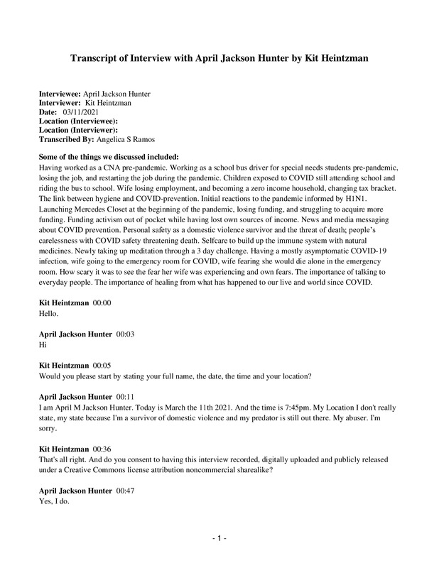 NB: Square brackets indicate Harriotte’s additions, some of which are not present in the interview but are a part of her story