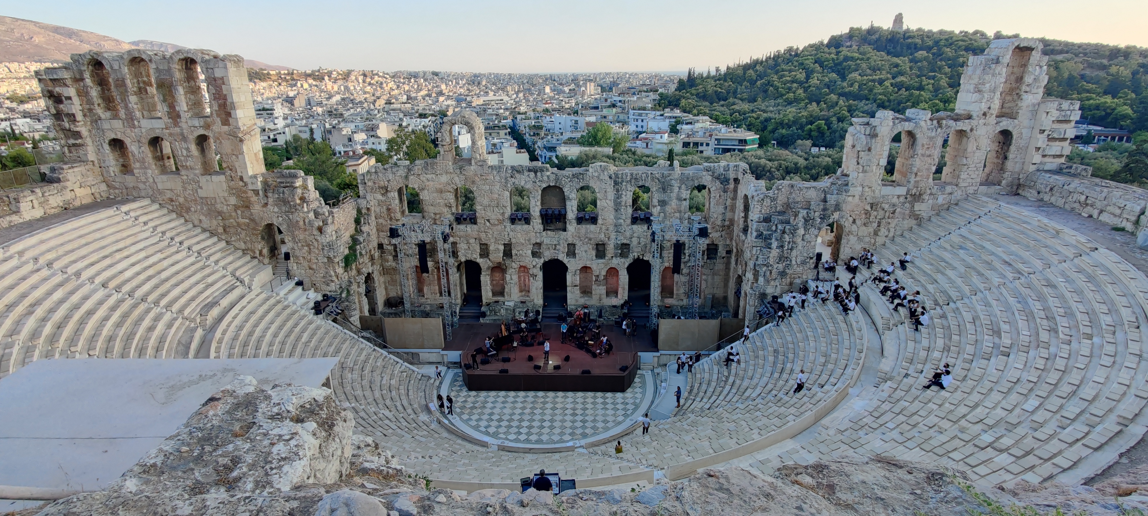 I uploaded a photograph of a stadium taken Athens, Greece while performers & staff were setting up the equipment during our visit.